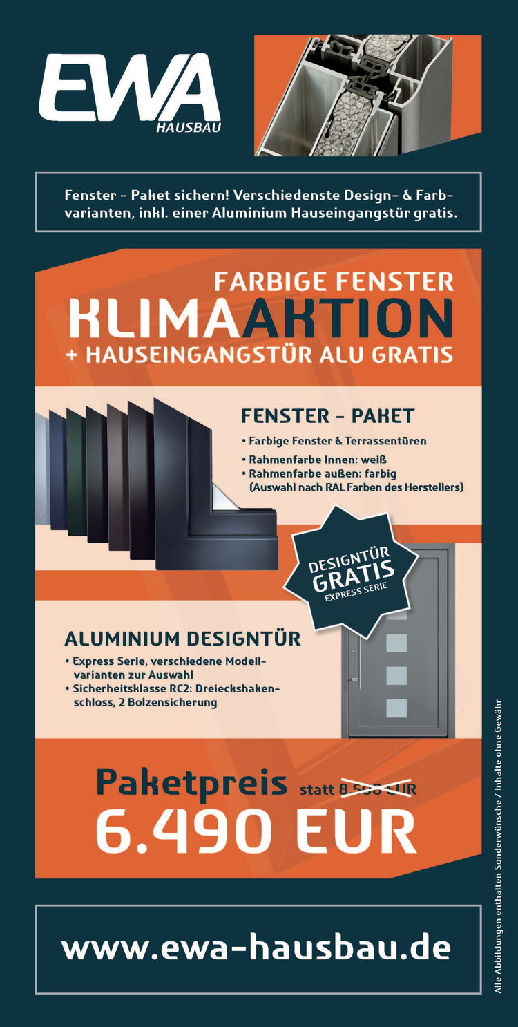 Nutzungsbedingungen Dieses Aktionsangebot gilt nur in Verbindung mit dem Kauf eines unserer EWA Aktionshäuser (bis zu 180m² Wohn-Nutzfläche).