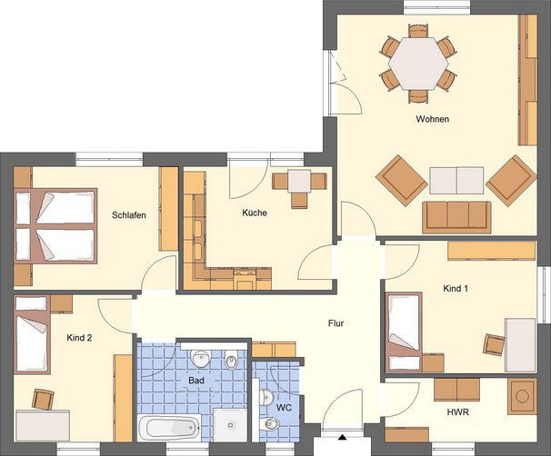 - Zusatzausstattungen wie Kaminzug oder elektrische Rollladen planbar (Mehrkosten).